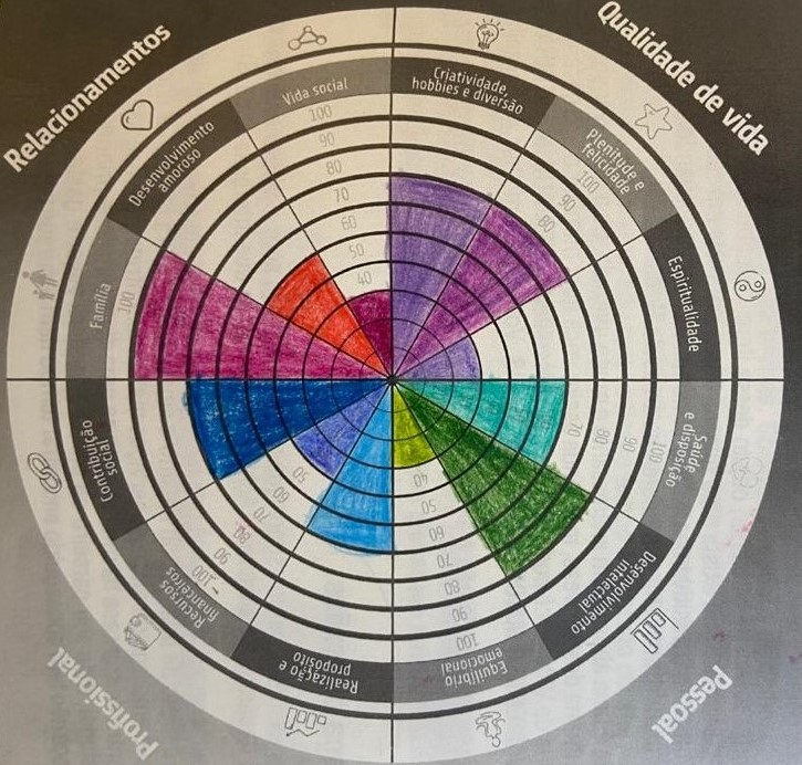 Eu nunca tinha ouvido falar sobre a Roda da Vida e achei muito interessante este exercício, foi revelador. Só de parar pra pensar sobre minha satisfação com cada área, pude descobrir informações valiosas, que ainda não estavam no meu consciente. Com certeza, voltarei a realizar este exercício em outro momento da minha vida.
